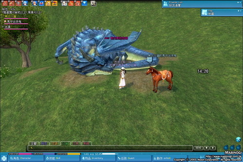 果醬與阿圓都在飛高高 =3= 市街好紅龍~不推嗎? G12的BOSS 諾雅達第一次登場 看著難得回來的 月茶 打怪......在旁邊跳舞監督戰況 坐著會長的老虎拍照留念~這隻寵物我就沒有了 10歲還遇到更小的.....這個一定灌了九歲變身藥水